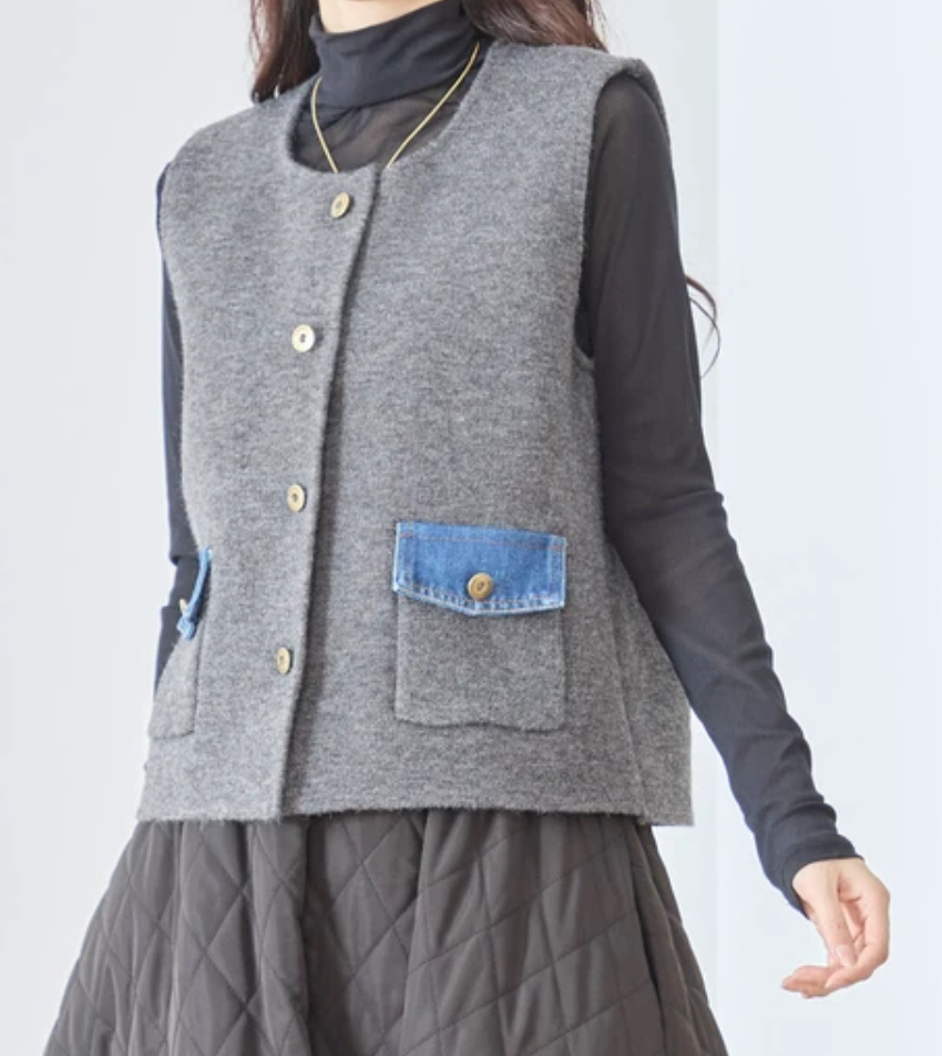 デニム使いニットベスト