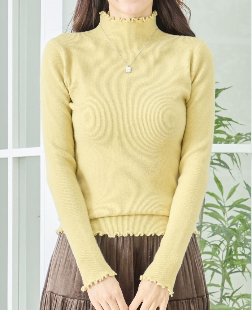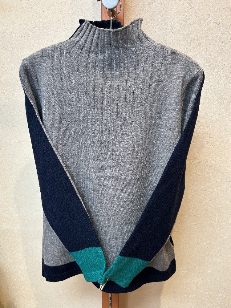 前後配色のハイネック・ニット
