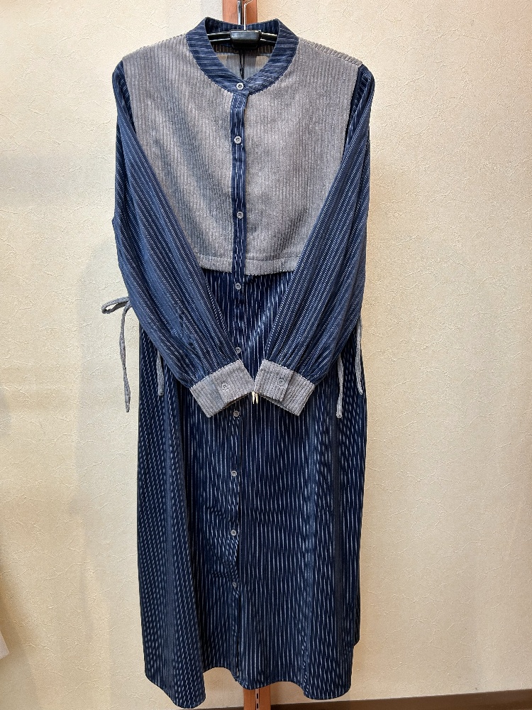 異素材ドッキング・ストライプワンピース