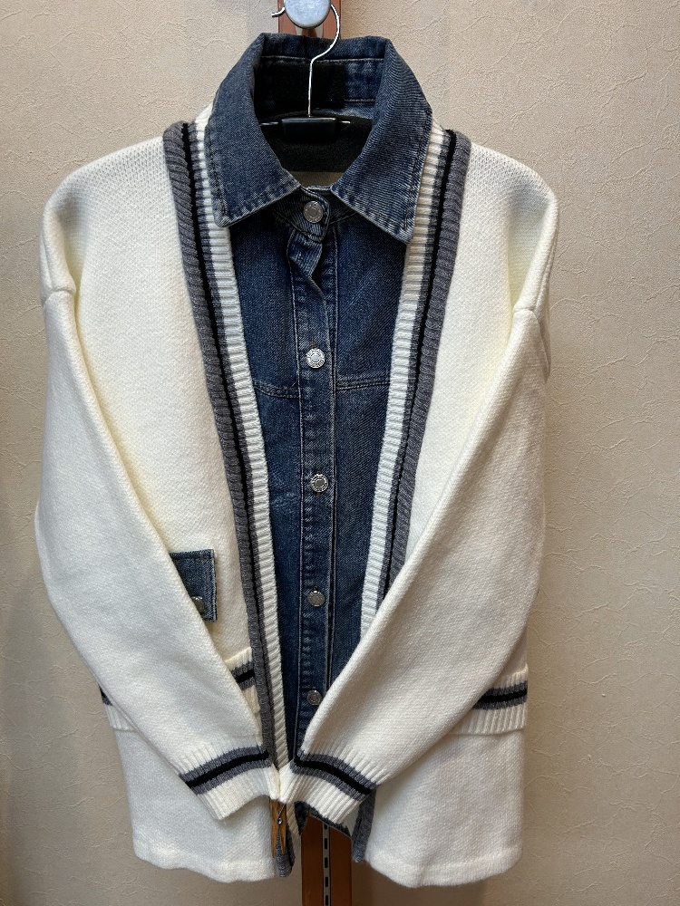 デニムとニットのコンビシャツカーデ