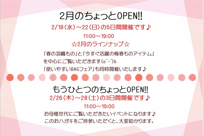 ◎掲載商品を楽しみにご来店頂くお客様がおみえになりますので、お電話でのお取り置きはご遠慮くださいませ。